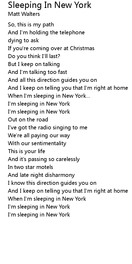 I'm sleeping in New York |