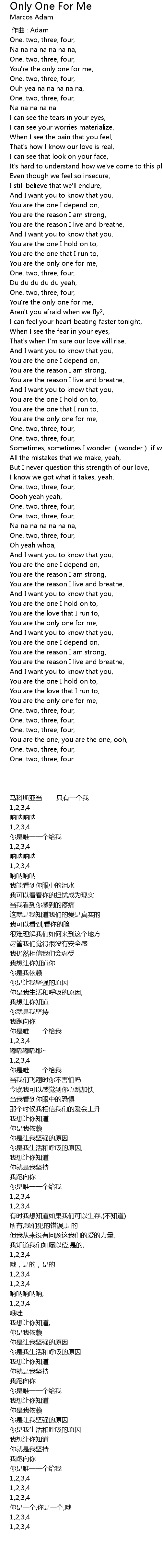 | [00:-05.00] | 马科斯亚当——只有一个我 |