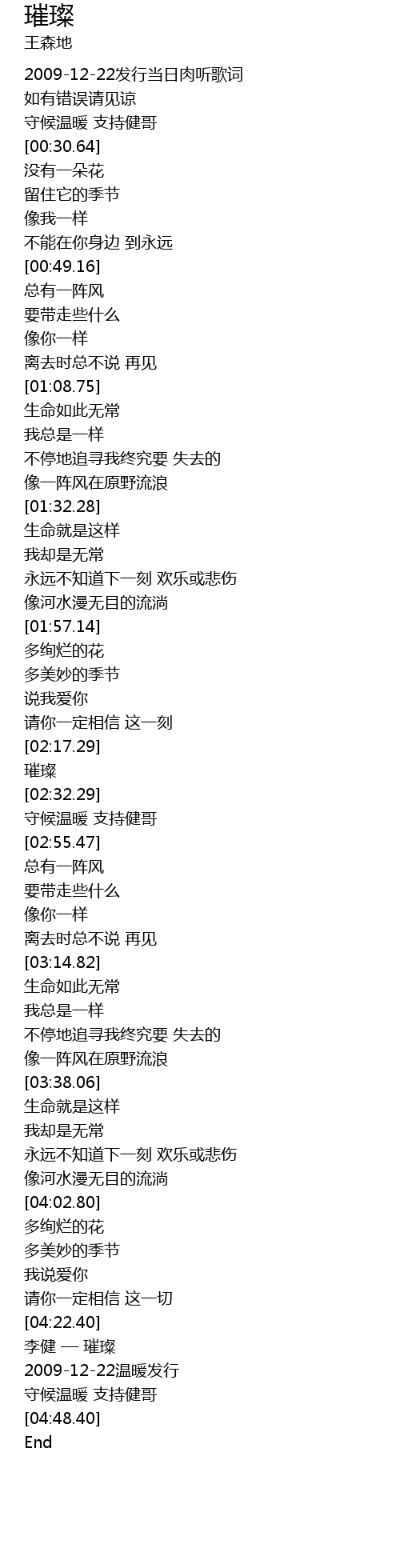 | [04:40.40] | 守候温暖 支持健哥 |