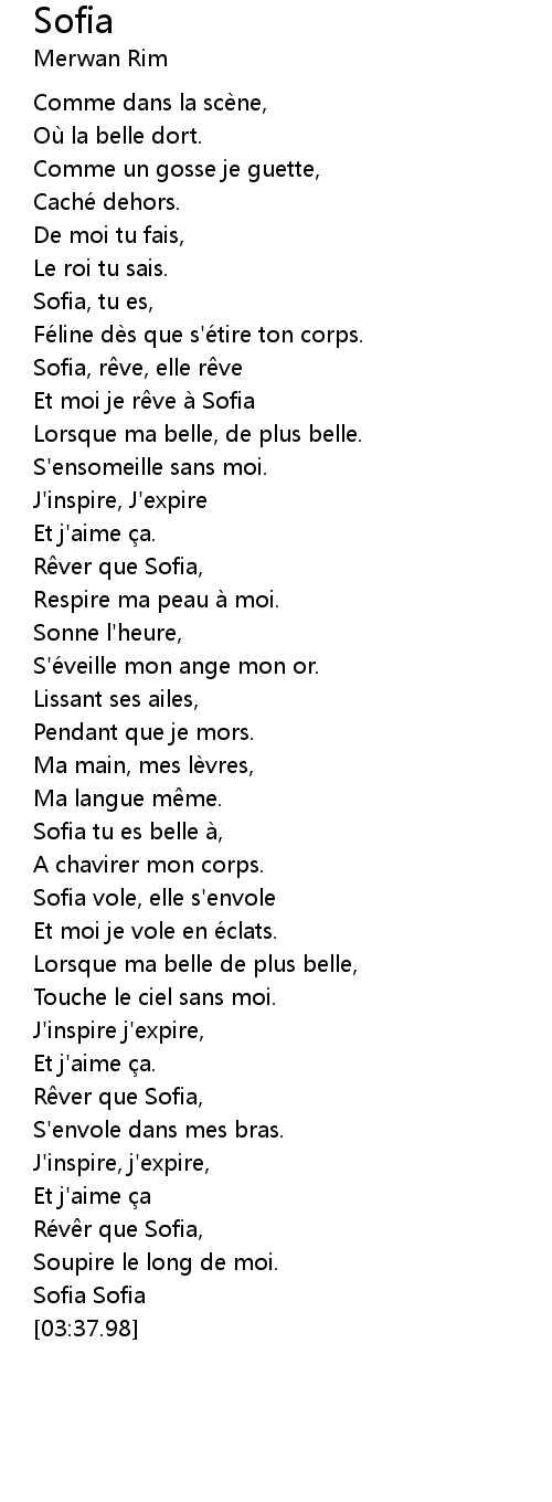 | [00:50.32] | Sofia, rêve, elle rêve |