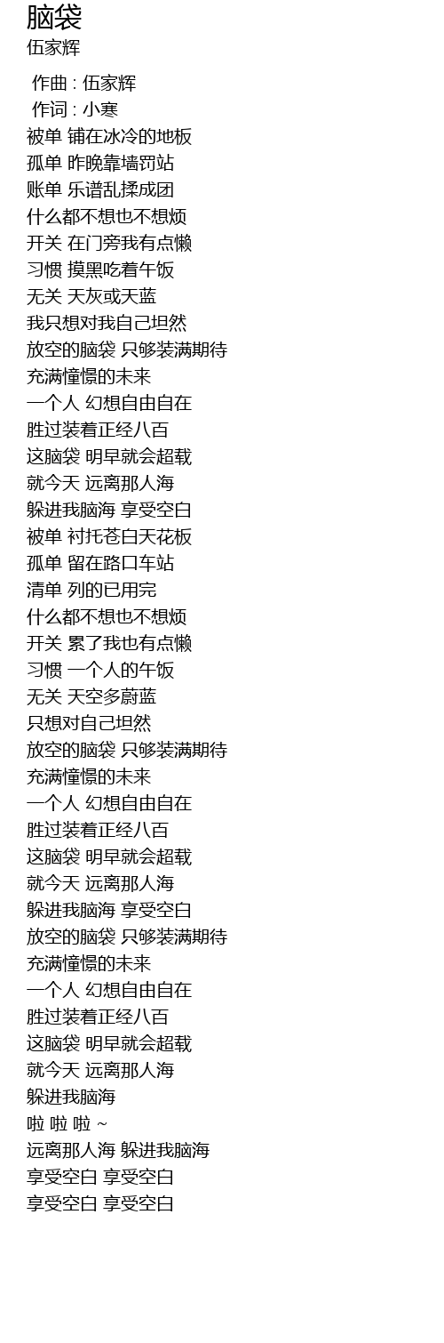 | [00:59.320] | 躲进我脑海 享受空白 |
