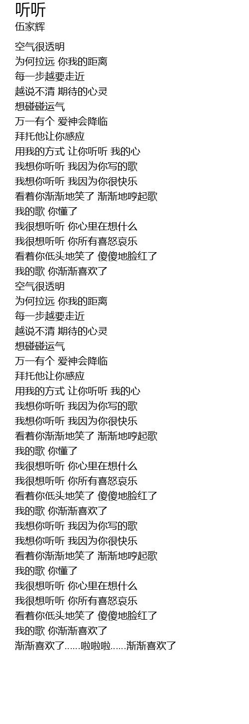 | [03:23.58] | 我的歌 你渐渐喜欢了 |