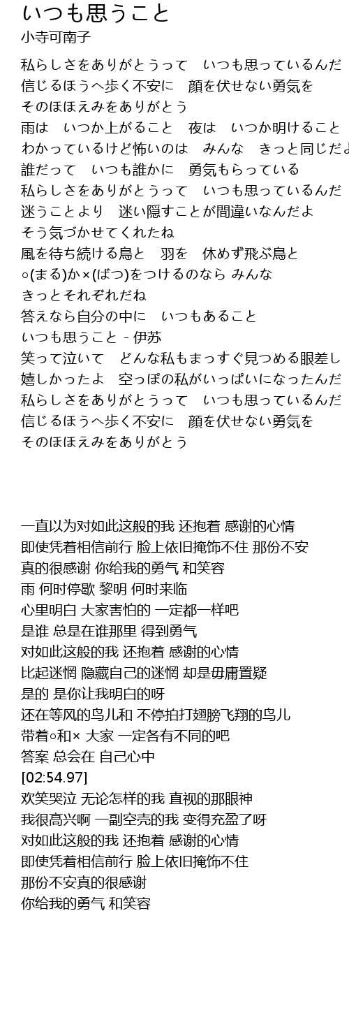 | [02:54.97] | いつも思うこと - 伊苏 |