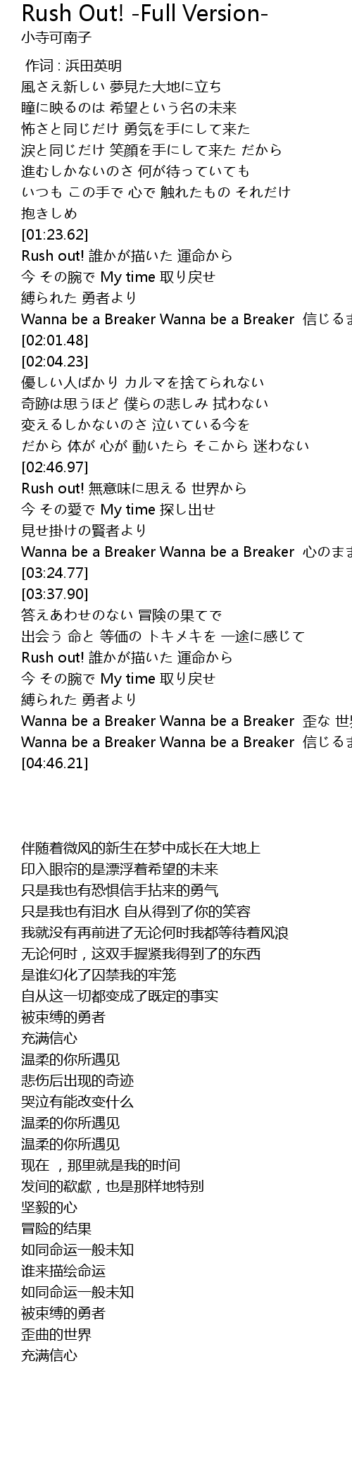 | [04:05.25] | Rush out! 誰かが描いた 運命から |