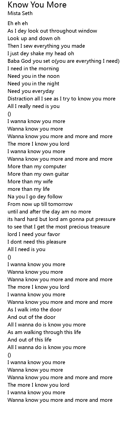 Wanna know you more