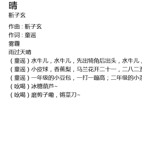 | (童谣)水牛儿,水牛儿,先出犄角后出头,水牛儿,水牛儿 | |