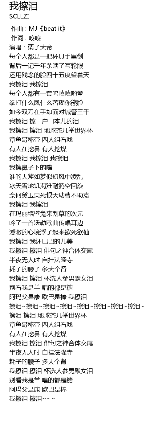 | [02:23.69] | 擦泪~擦泪~擦泪~擦泪~擦泪~擦泪~擦泪~擦泪~ |