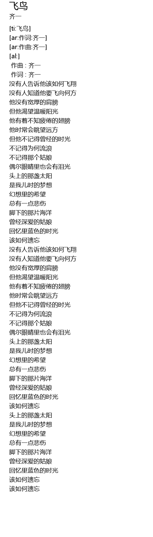 | [00:03.46] | 没有人告诉他该如何飞翔 |