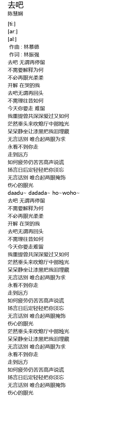 | [01:50.99] | 去吧 无谓再停留 |