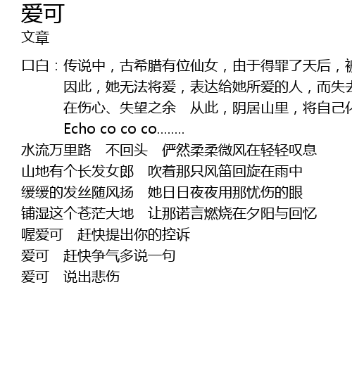 | 口白:传说中,古希腊有位仙女,由于得罪了天后,被罚不准多说话 | |