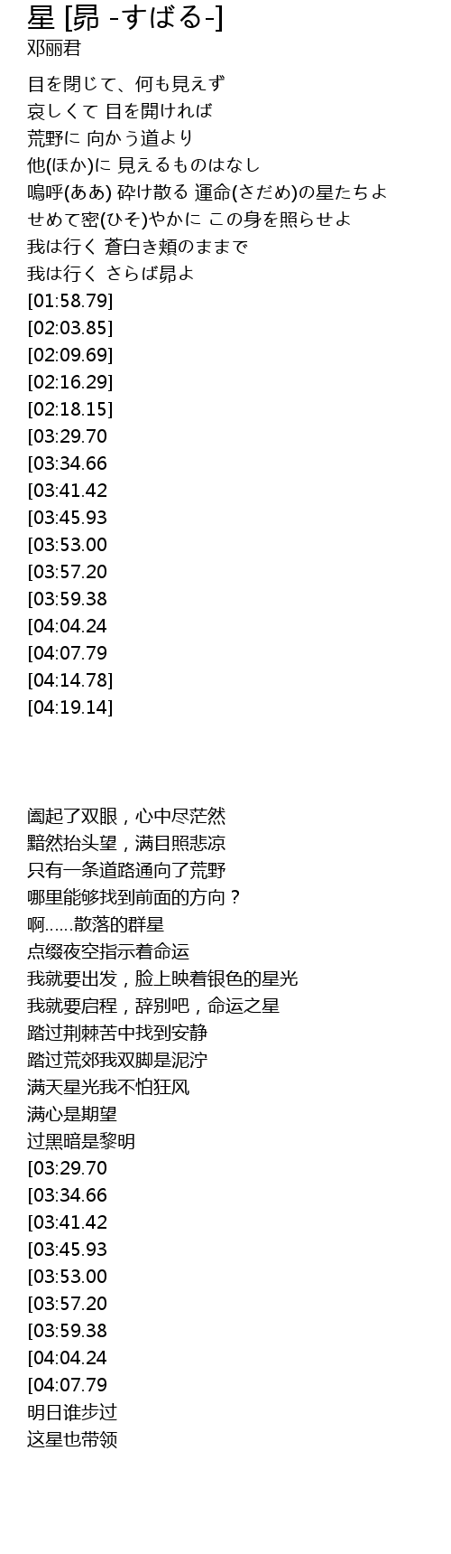 | [02:21.22][03:29.70] | 啊 星夜灿烂 |