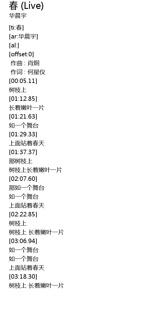 | [02:01.65] | 树枝上长着嫩叶一片 |