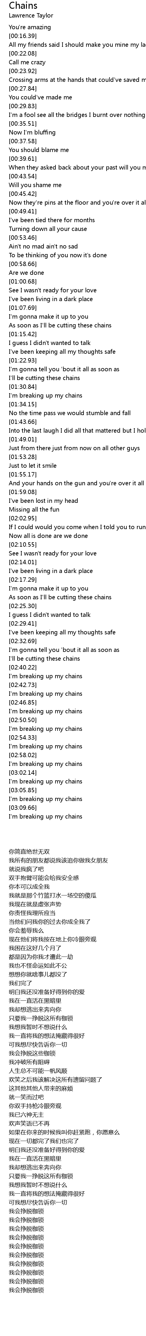 I'm breaking up my chains |