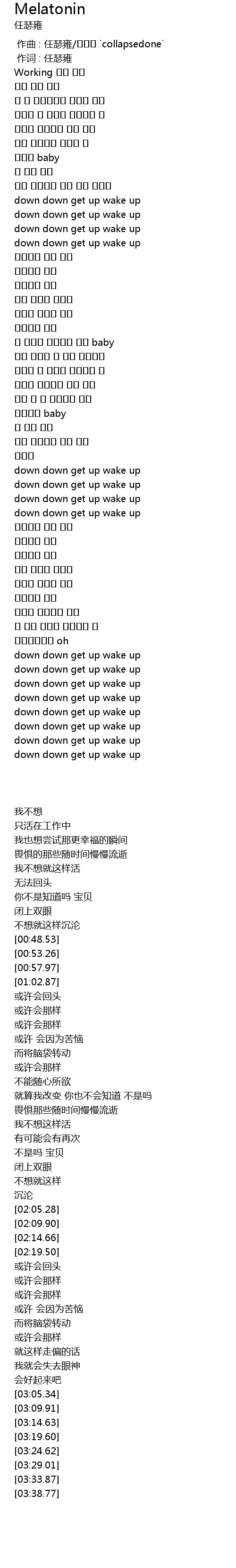 | [00:00.00] | 作曲 : 任瑟雍/이우민 `collapsedone` |