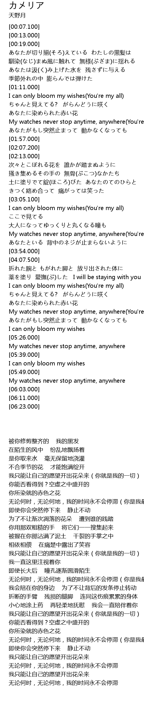 | [03:06.000] | I can only bloom my wishes(You're my all) |