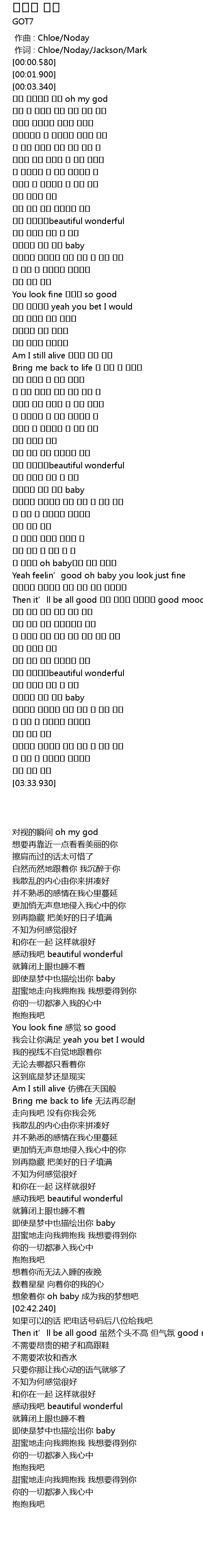 | [01:33.380] | Am I still alive 천국에 있는 듯이 |