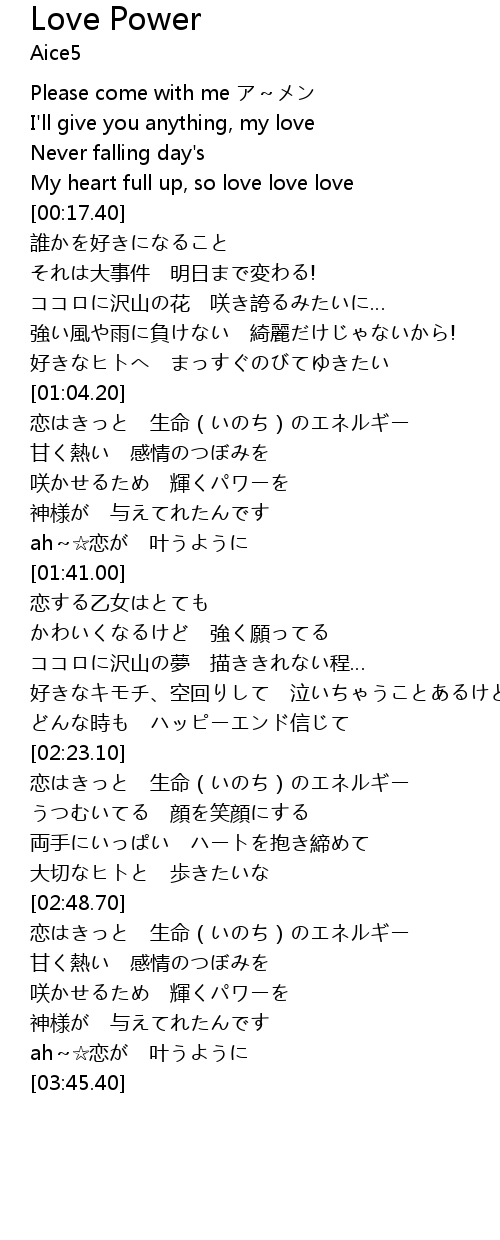 | [01:05.95] | 恋はきっと 生命(いのち)のエネルギー |
