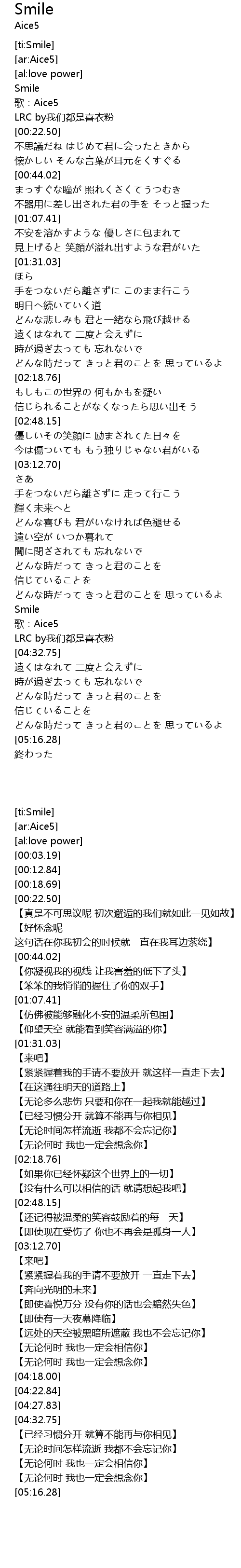 | [01:19.91] | 【仰望天空 就能看到笑容满溢的你】 |