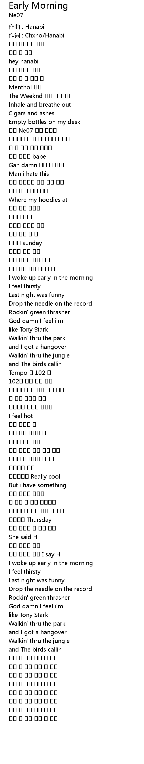 | 歌曲 | Early Morning |