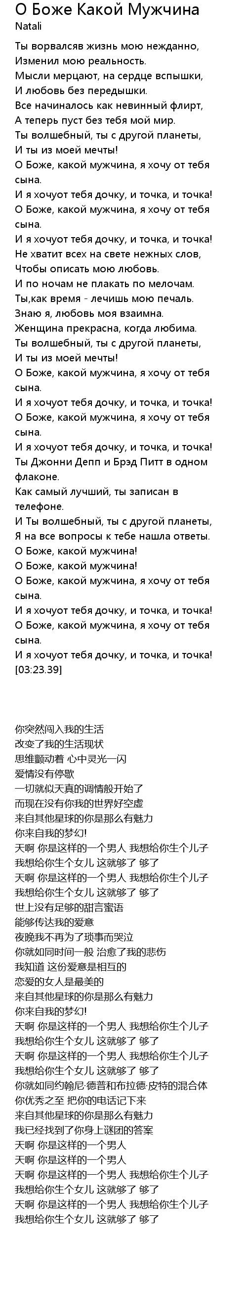 | [00:42.20] | О Боже, какой мужчина, я хочу от тебя сына. |
