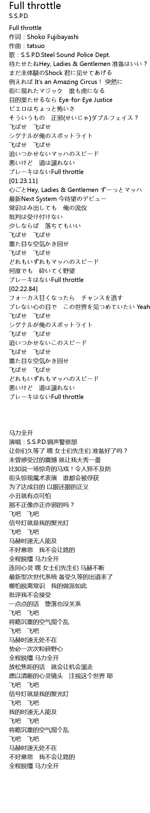 | [00:14.00] | 歌:S.S.P.D.Steel Sound Police Dept. |
