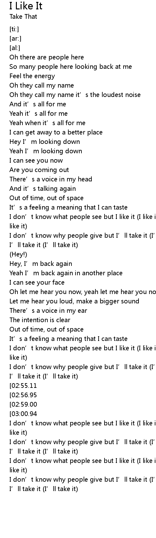 | [03:11.04] | I don’t know what people see but I like it (I like it), I like it (I like it) |