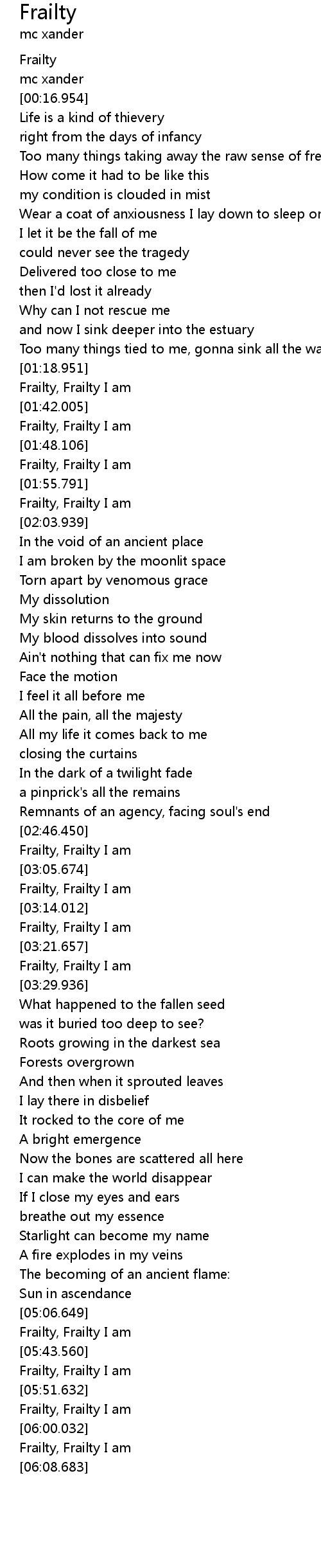 Frailty, Frailty I am |