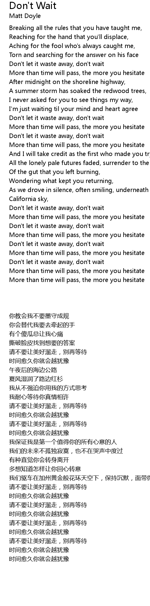Don't let it waste away, don't wait |