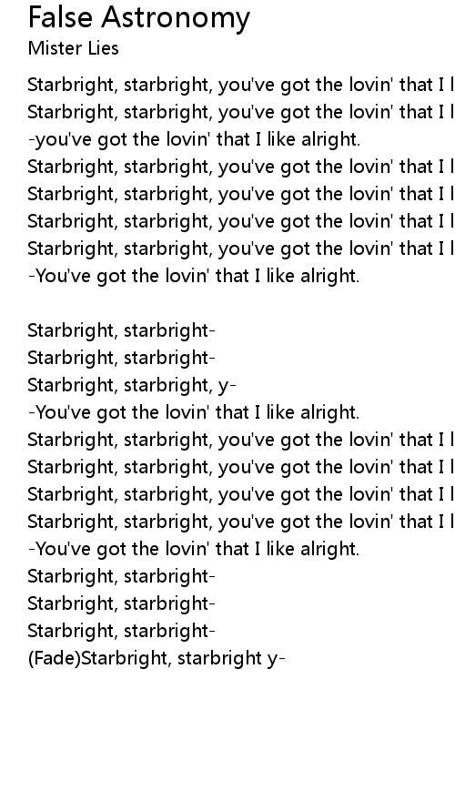 Starbright, starbright, you've got the lovin' that I like alright. |