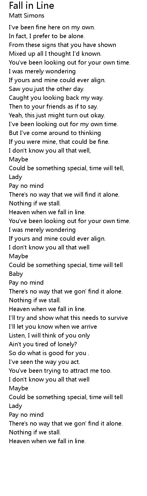 Heaven when we fall in line. |