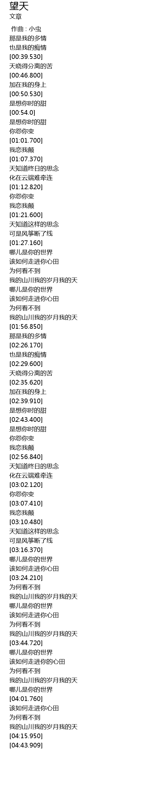 | [00:41.560] | 天晓得分离的苦 |