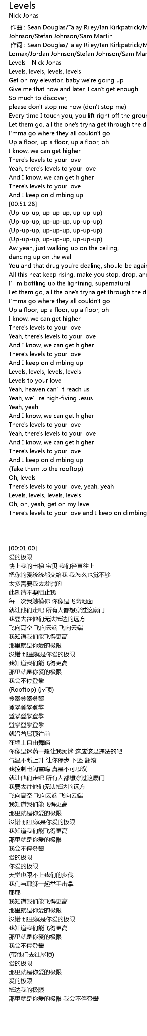 | [00:01.00] | Levels - Nick Jonas |
