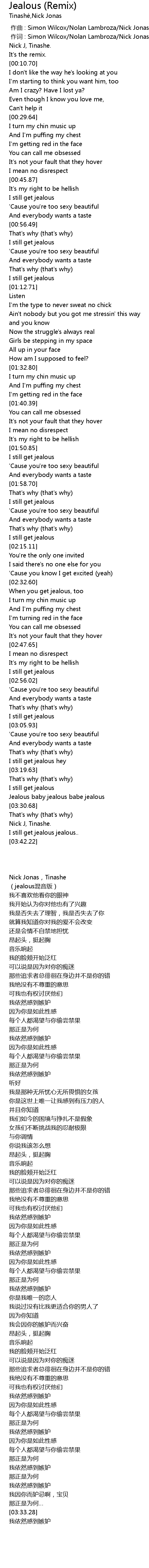 | [03:27.74] | Jealous baby jealous babe jealous |