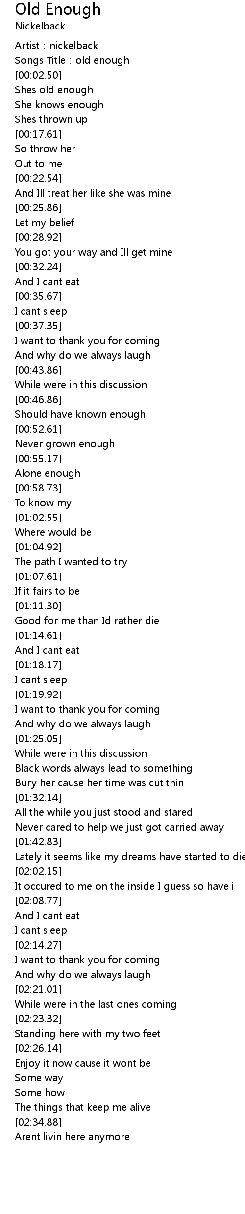 | [00:01.37] | Songs Title: old enough |