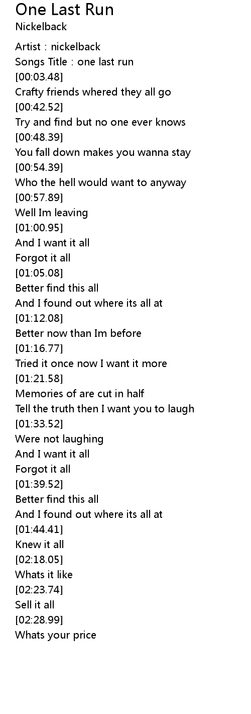 | [00:01.86] | Songs Title: one last run |