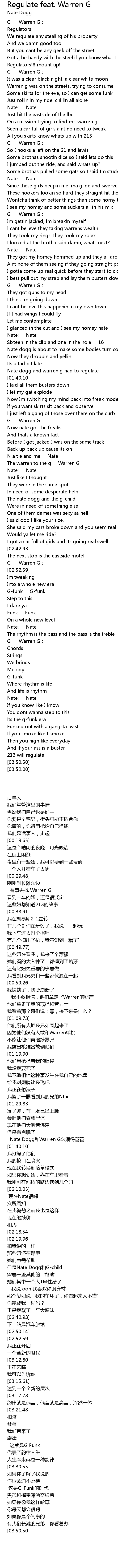| [01:37.25] | Nate dogg and warren g had to regulate |