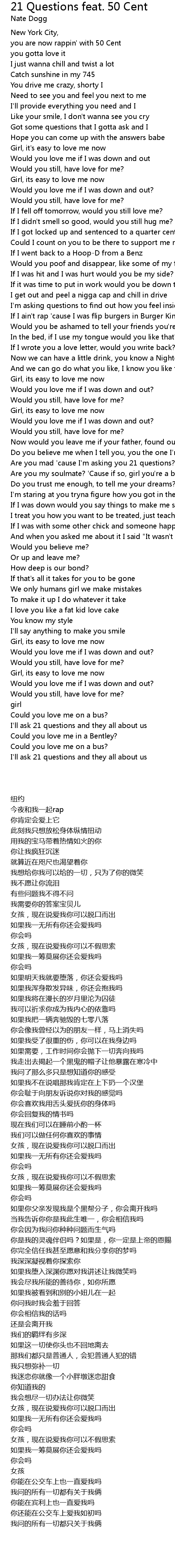 I'll ask 21 questions and they all about us |