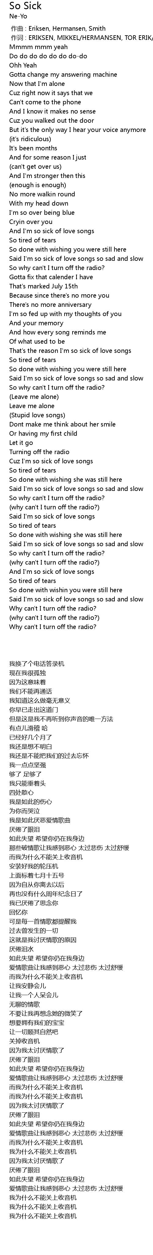 | 歌曲 | So Sick |