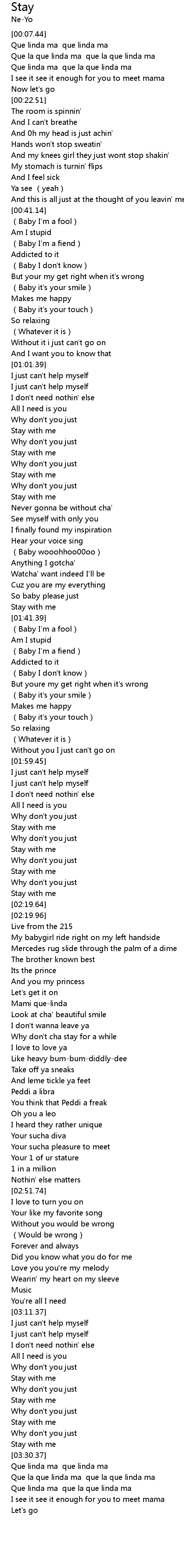 | [02:34.67] | Why don't cha stay for a while |