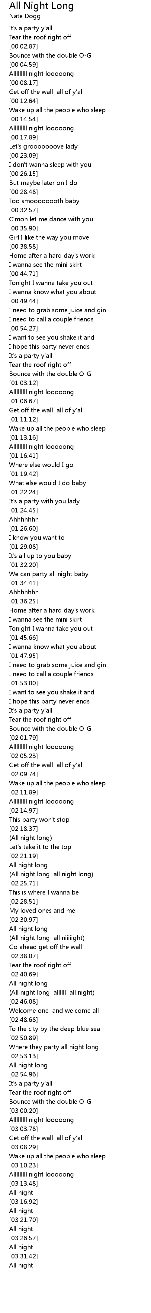 | [02:03.00] | Alllllllll night looooong |