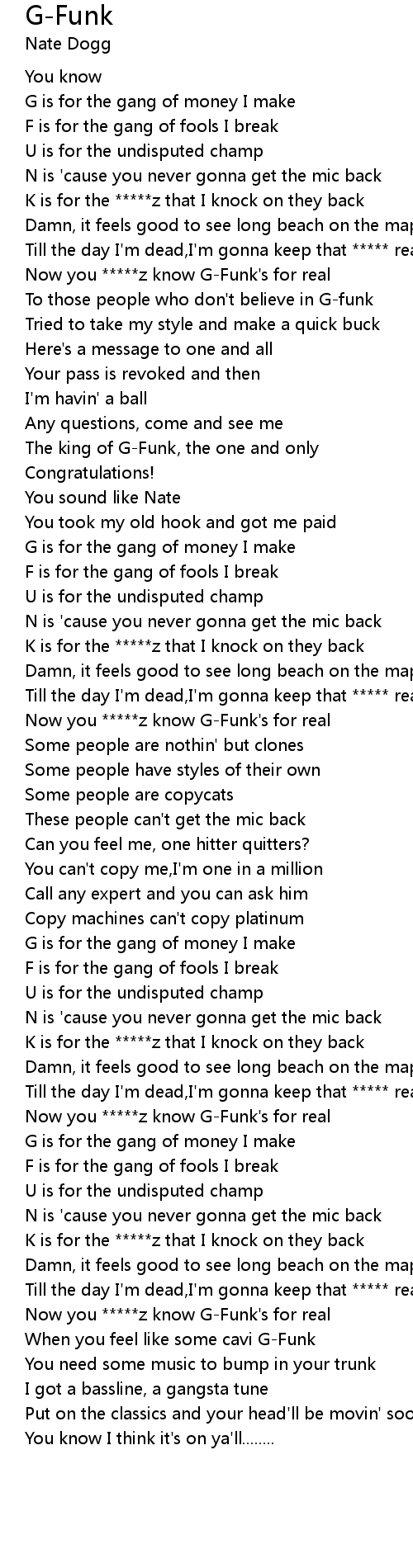 Now you *****z know G-Funk's for real |