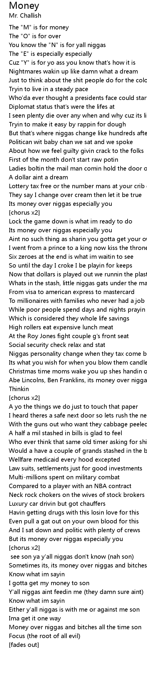 Its money over niggas especially you |