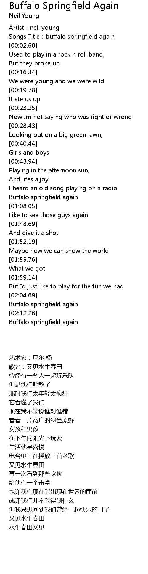 | [00:01.28] | Songs Title:buffalo springfield again |