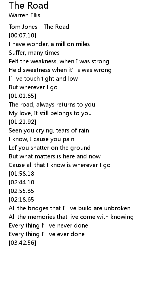 | [00:01.12] | Tom Jones - The Road |
