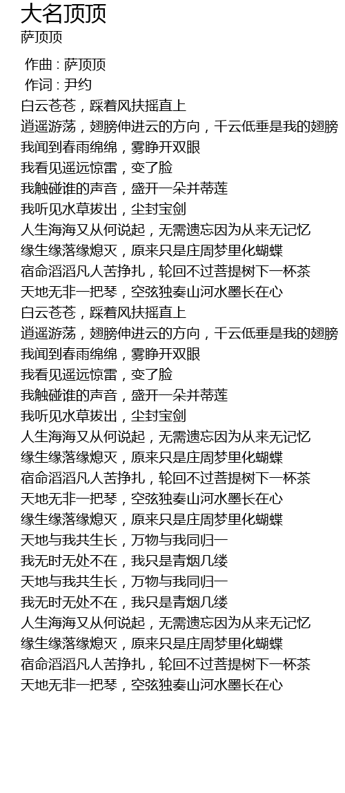 | [00:00.00] | 作曲 : 萨顶顶 |
