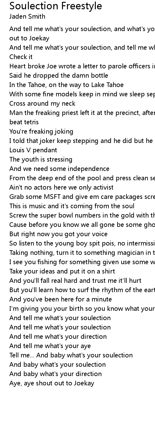 And tell me what's your soulection, and what's your direction, shout out to Joekay |