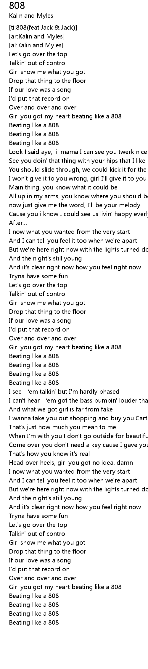 | [01:38.80] | Girl you got my heart beating like a 808 |