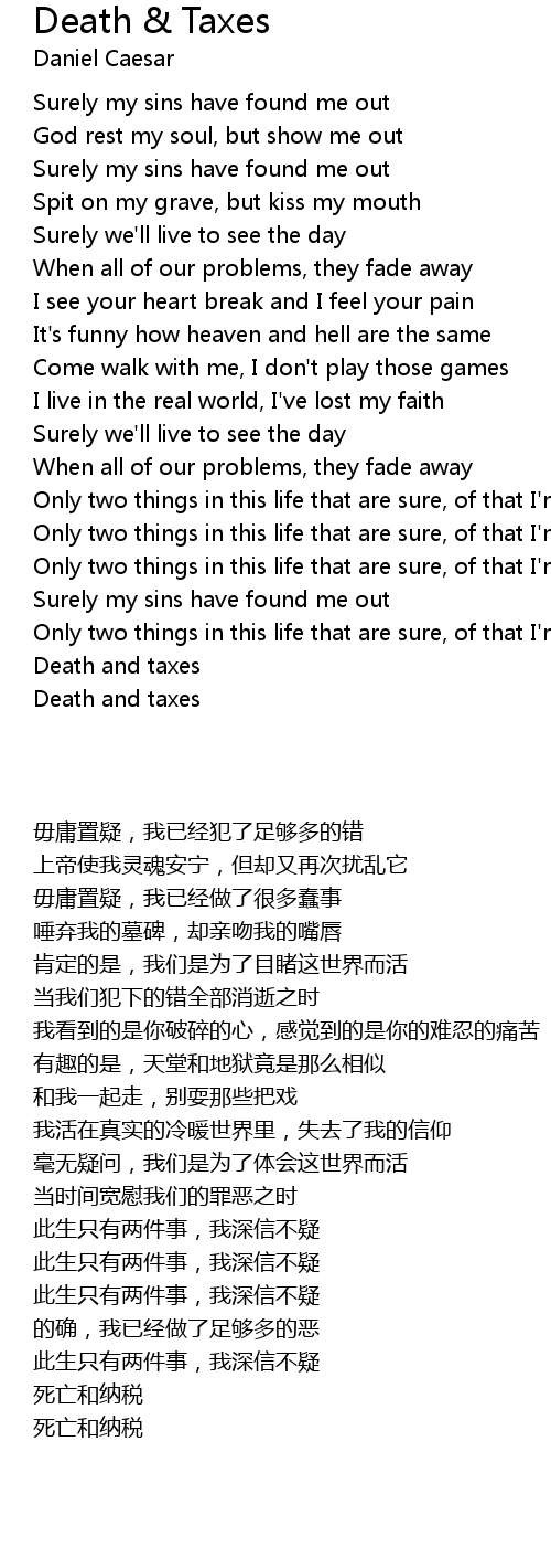 Only two things in this life that are sure, of that I'm sure |
