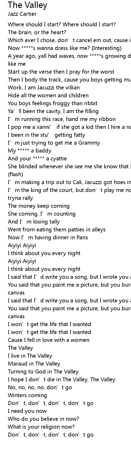 | [02:14.48] | I hope I don' t die in The Valley, The Valley |