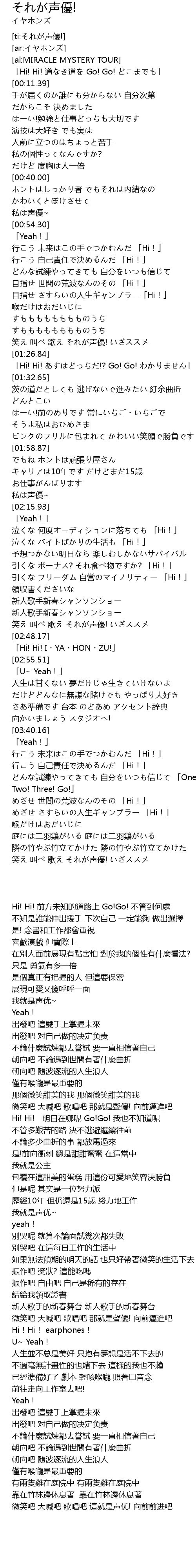| [02:42.17] | 笑え 叫べ 歌え それが声優! いざススメ |